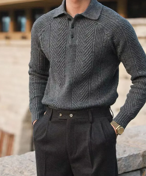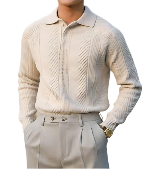 Alfonso Elegante Polo met Lange Mouwen – heren polo met gebreide structuur voor casual en formele outfits