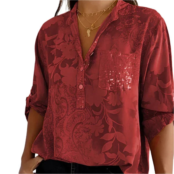 Archie dames blouse – elegante glanzende blouse met losse pasvorm