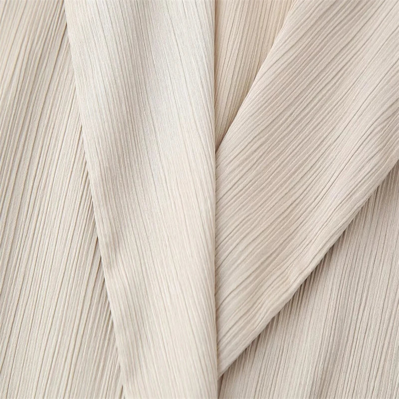 Het Iridessa co-ord pak combineert een double-breasted blazer met een high-waisted, wijde broek voor een tijdloos en krachtig silhouet. Gemaakt van lichte, ademende stof biedt deze tweedelige set comfort én stijl, perfect voor zowel zakelijke gelegenheden als avondlooks. Verkrijgbaar in khaki en zwart, een veelzijdige keuze die luxe en verfijning moeiteloos samenbrengt.