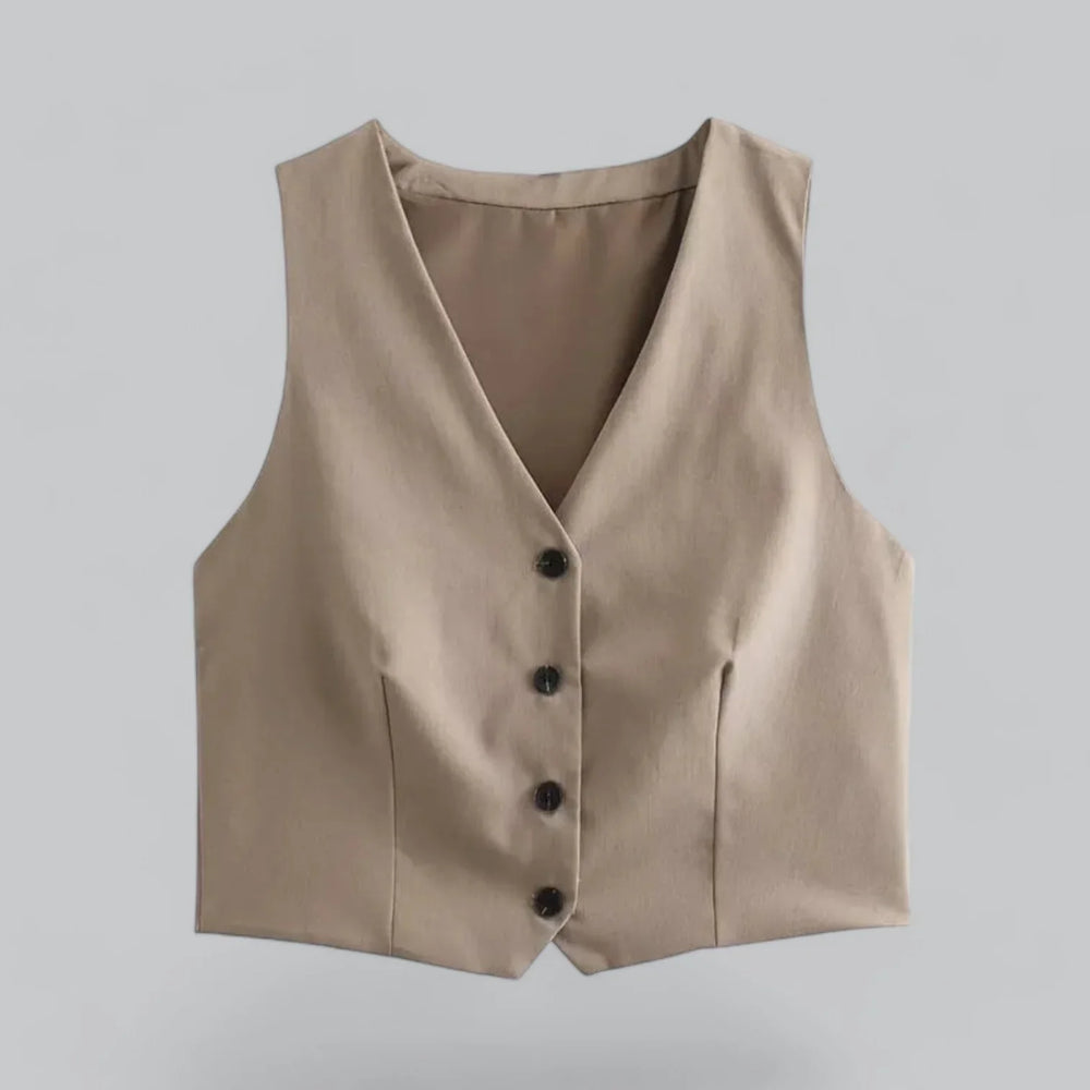 Caitlin Set – Gebreide 3-delige Damesoutfit met Top, Vest en Broek