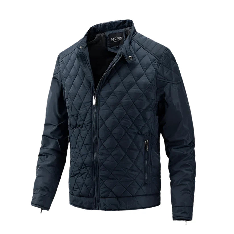 Kaelen Gewatteerde Herenjas – Donkerblauw met Diamantstiksel en Praktische Zakdetails