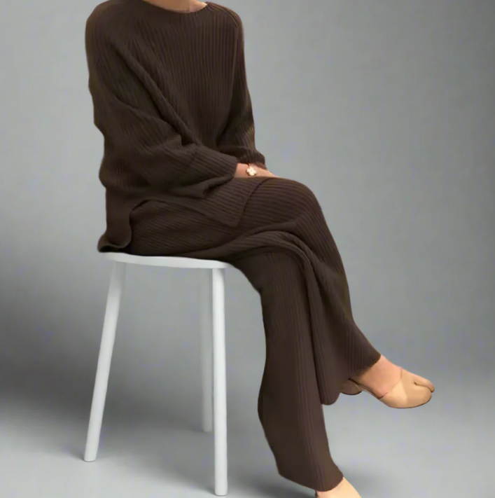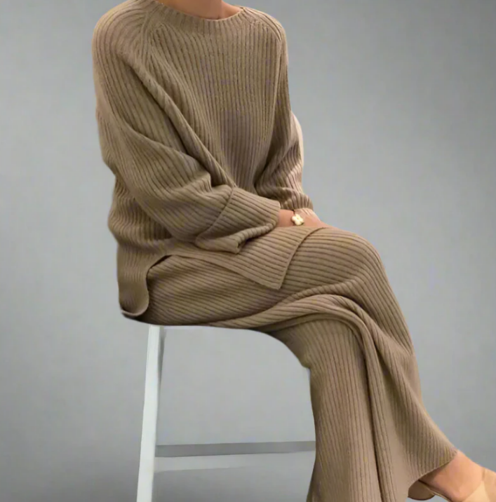 Ceridwen Wol Tweedelige Set – Elegante Dames Set met High-Waist Broek