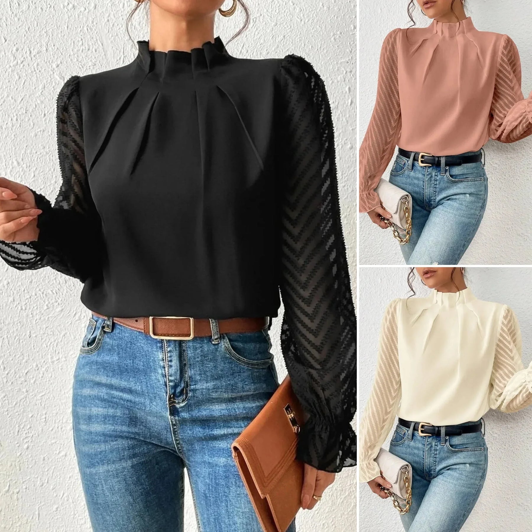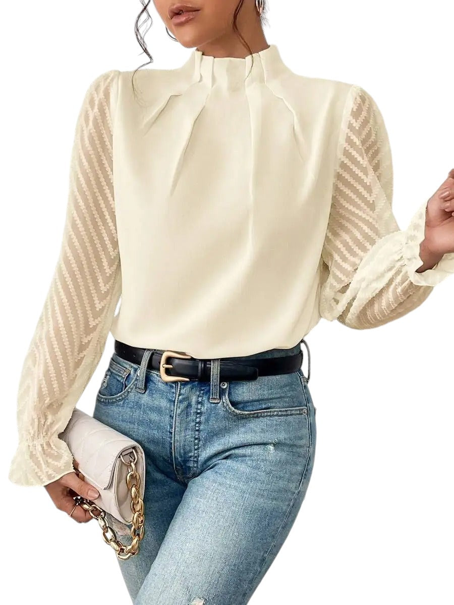 Isabelle blouse met hoge hals en verfijnde plooiaccenten